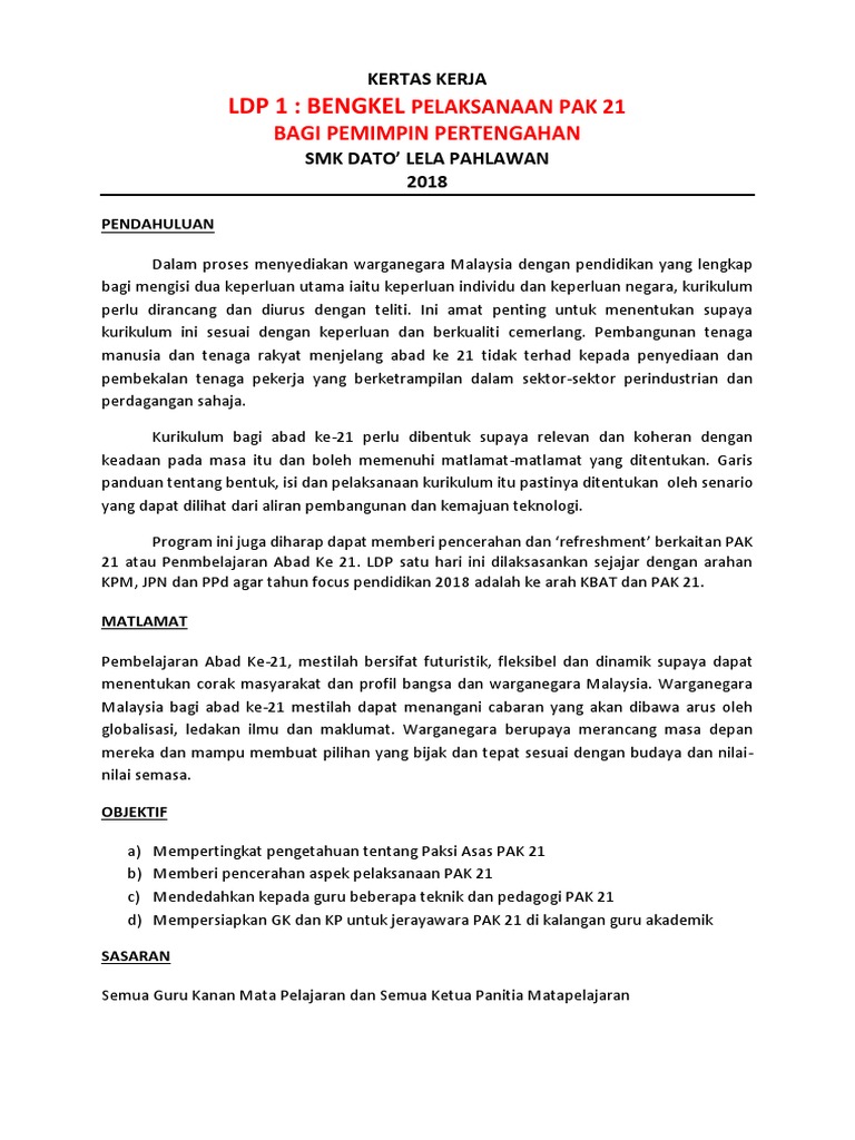 Kertas Kerja Bengkel Pak 21 2018 Pdf